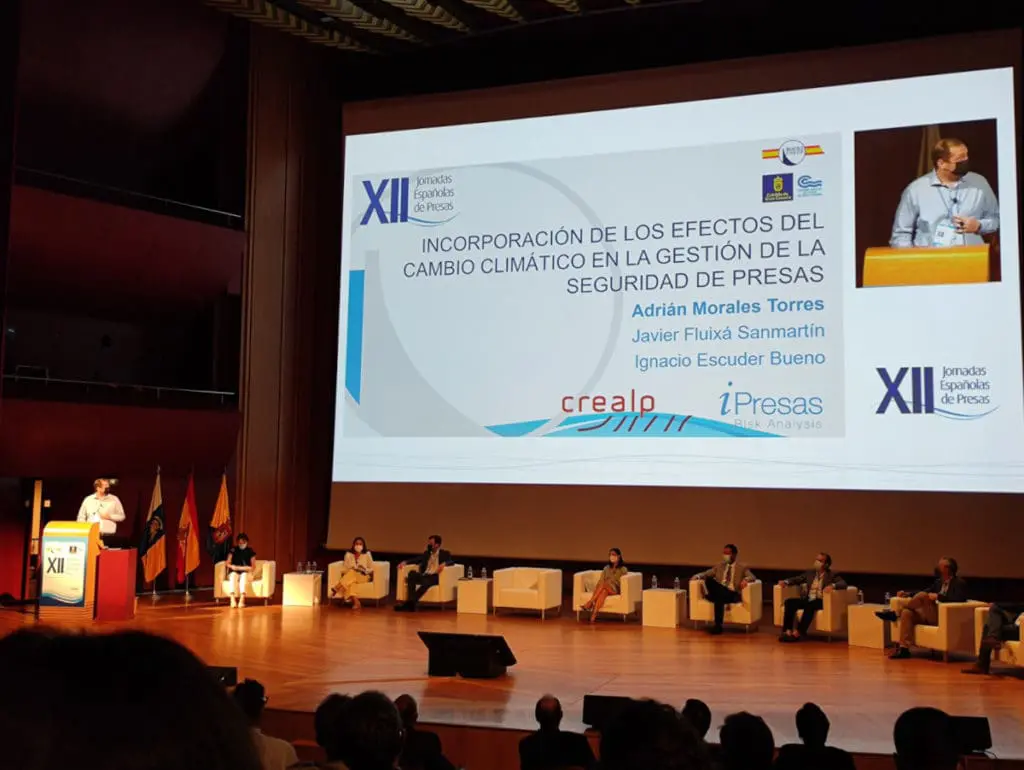 Con motivo de la celebración de las XII Jornadas Españolas de Presas en el Palacio de Congresos de Canarias, Auditorio Alfredo Kraus, de Las Palmas de Gran Canaria, del 27 de septiembre al 1 de octubre de 2021. El equipo de iPresas participó de forma activa en el evento mediante la presentación que tuvo lugar el martes 28 de septiembre. titulada, “Incorporación de los efectos del cambio climático en la gestión de la seguridad de presas”. Dicha ponencia fue realizada por Adrián Morales, Dr. Ingeniero de Caminos Canales y Puertos por la Universidad Politécnica de València y Director Técnico y Socio de iPresas, que junto a otros expertos del sector pudieron presentar la aplicación del análisis de riesgos al caso de estudio de una presa española incluyendo el efecto del cambio climático sobre las solicitaciones hidrológicas y la disponibilidad de los recursos hídricos.