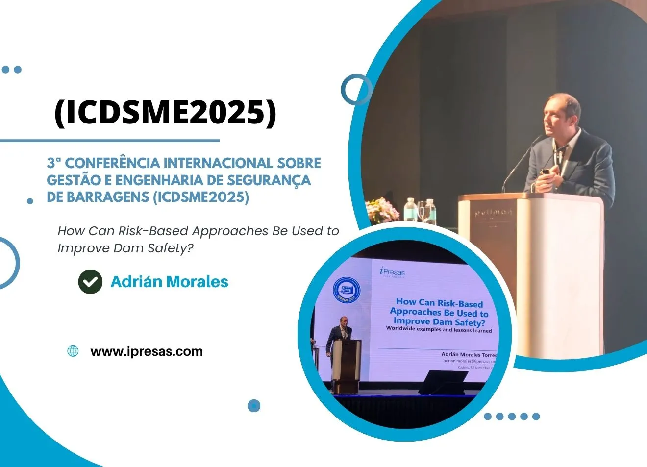 Somos uma empresa de consultoria líder no apoio à gestão integrada da segurança de barragens e outras infraestruturas críticas através da análise de risco, um campo no qual a iPresas é pioneira em todo o mundo, com experiência em países como Espanha, EUA, Índia, Brasil, Malásia, Colômbia, Argentina, Tanzânia ou África do Sul, entre muitos outros.